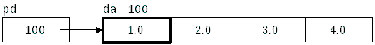 Visually:double *pd = da; /* a pointer to a double (in this case it's a pointer to the first element of the array) */