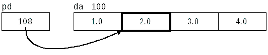 Visually:double *pd = &da[1]; /* a pointer to a double (the second element of the array) */