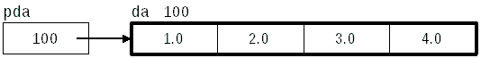 When dealing with pointers and arrays, things can seem a little complicated. For example, there is a big difference between a pointer to a double and a pointer to an array of doubles. Below, da is an array of 4 doubles: