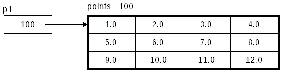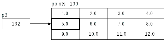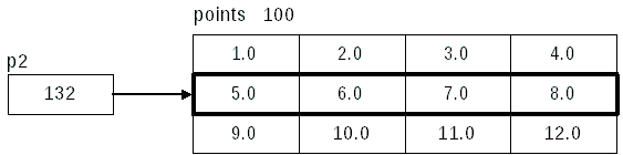 Visually:double *p3 = &points[1][0]; /* a pointer to a double (first element of 2nd row) */