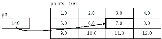 Visually:double *p3 = &points[1][2]; /* a pointer to a double (3rd element of 2nd row) */
