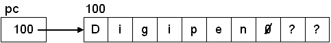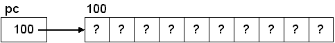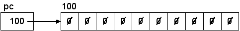 /* Allocate and initialize 10 chars to 0 */ char *pc = (char *) calloc(10, sizeof(char));After calling calloc: