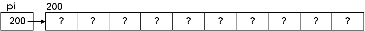 int *pi = (int *)malloc(10 * sizeof(int)); /* Other code ... */