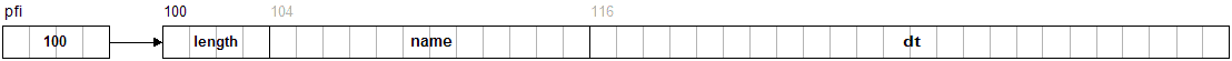 | 10 chars (10 bytes) | 10 ints (40 bytes) |