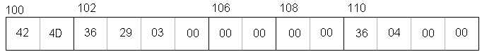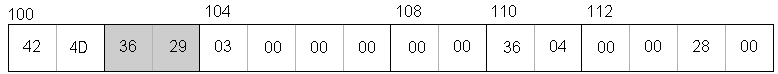 This is the dump of the EightQueens bitmap file showing the headers, color table, and indexes. The file size is in bold on the first line. 0003293616 == 20715810 (little-endian)