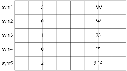struct Symbol sym1, sym2, sym3, sym4, sym5;