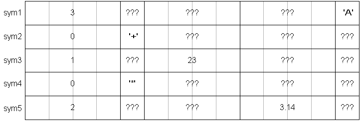 Suppose we want to parse simple expressions and we need to store information about each symbol in the expression. We could use a structure like this: