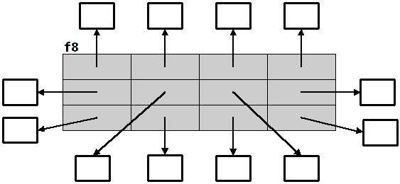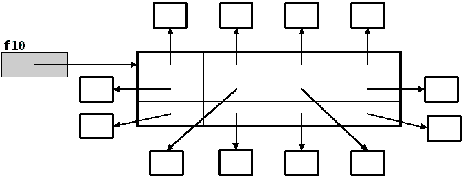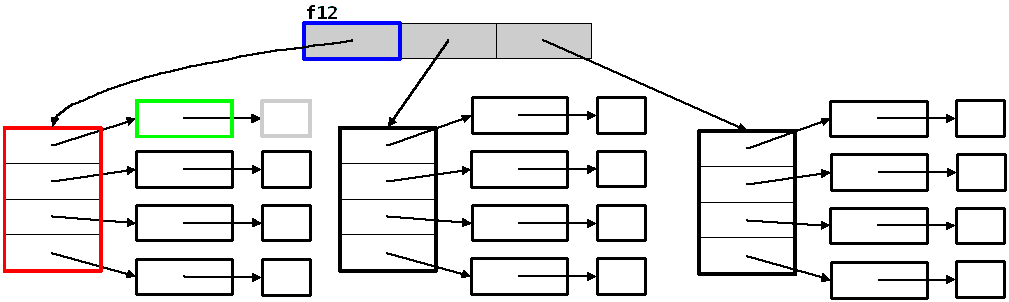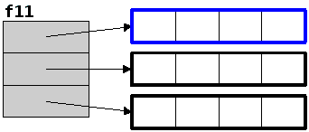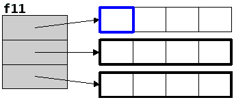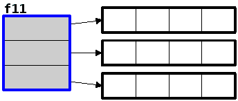This is how to interpret the shapes used below. The diagrams assume 4-byte integers and 8-byte pointers.- int f1;