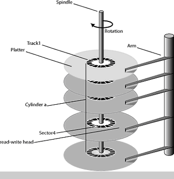 - The hard disk drive consists of several disks (platters) stacked one atop the other, rotating in sync at high speed (e.g. 3600, 5400, 5900, 7200, 10000, 15000 RPM).