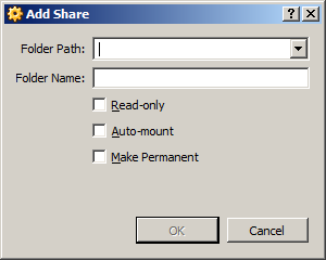 You add a shared folder by clicking on the folder icon (with the '+' sign) or pressing the insert key. This presents the Add Share dialog box:![]()