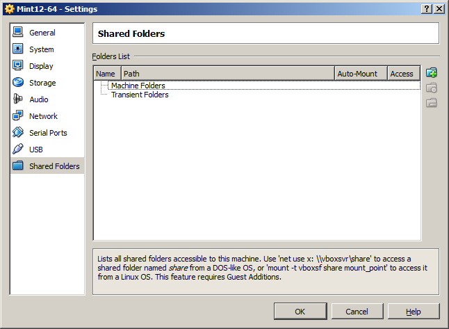 For most users, using the default mount locations and mount names is fine. But, if you want more control over the shared folder process, you can mount the folders the "Linux way". In the following example, I'm going to mount the shared folders in my home directory on Linux, essentially preventing any other users from accessing these folders.In the Linux guest operating system, we need to mountmount these shares using the mountmount command. In this example, I will show the steps involved.