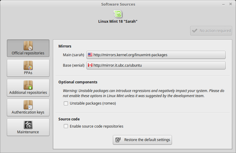 You will be prompted for your password. A window will be displayed that will allow you to tell Linux Mint which servers to use to download from:mintsources