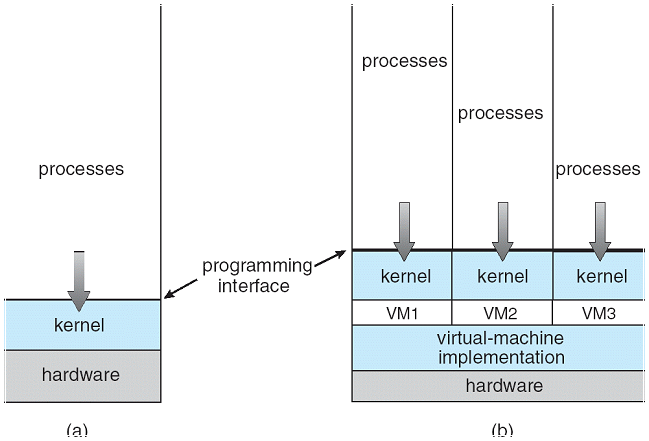 Operating System Concepts - 8th Edition Silberschatz, Galvin, Gagne ©2009 (a) Non-virtual machine, (b) Virtual machine.