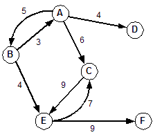 To Path Cost ------------------------ A A 0 B A-B 13 C A-B-D-C 30 D A-B-D 25 E A-B-D-C-E 34 F A-F 11