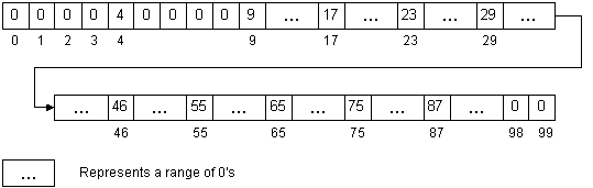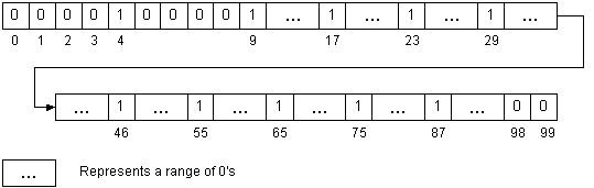 A 100-element array with 10 items (not full) marking with a 1 or 0: