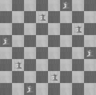 The goal behind the problem is to place 8 queens on a chessboard so that no queen threatens another. Another way to state this (for those not familiar with the capabilities of the queen in chess) is to place 8 markers on a standard 8x8 chess board so that no two markers are on the same line vertically, horizontally, or diagonally.