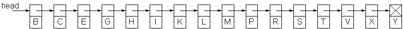 The fundamental problem with linked lists is that during a search, we must look at every node in the list that comes before the target node, even if the list is sorted. (No binary search methods are possible.)Searching for T in the list below requires looking at 12 nodes before reaching the node with T. We would pass through B, C, E, G, H, I, K, L, M, P, R, S then we would reach T.