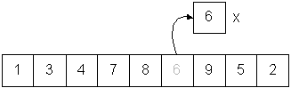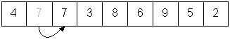 7 is not larger than 8, so we copy 8 to the open slot: (It turns out that 8 was already in the correct position, but we didn't know that until we looked at the element to the left.)