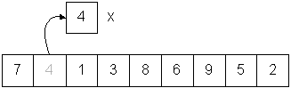 This is how we would see our "partitioned" array at the start of the sort:7 4 1 3 8 6 9 5 2