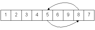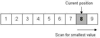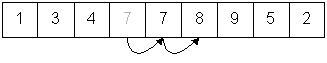 Now, we compare items 4 and 5. 7 is not greater than 8, so we don't swap.