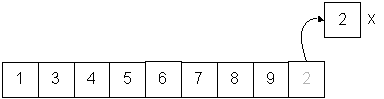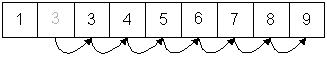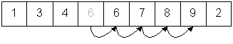 Shift larger elements to the right (3, 4, 5, 6, 7, 8, and 9):