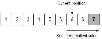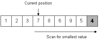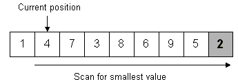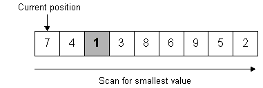 1 was found to be the smallest, so it is swapped with the value stored at the