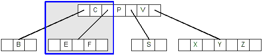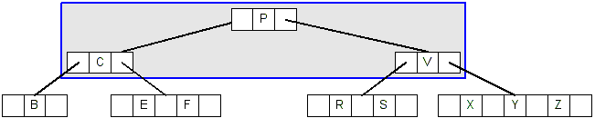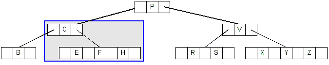 - Now, the node with B has at least 2 keys and is a leaf node, so we can simply