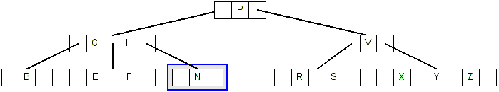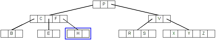 - Now we can simple delete H from the leaf node, resulting in this tree: