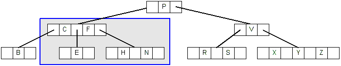 - Now we can delete the original F because it is in a leaf node that contains at least 2 keys,